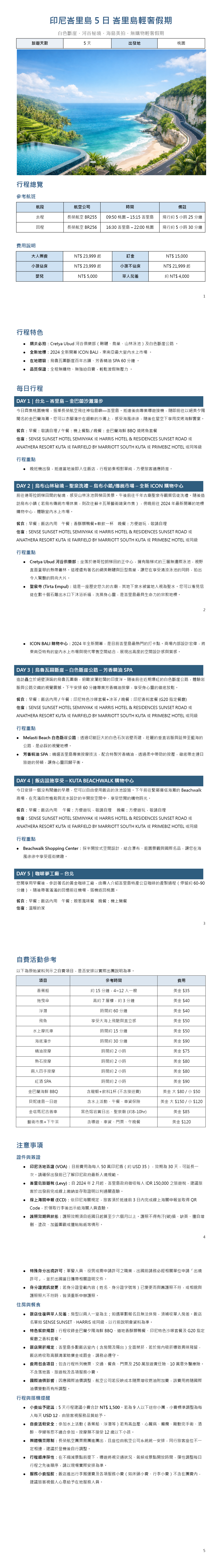 📌 需另加 IDR 150,000 峇里島入境旅遊稅