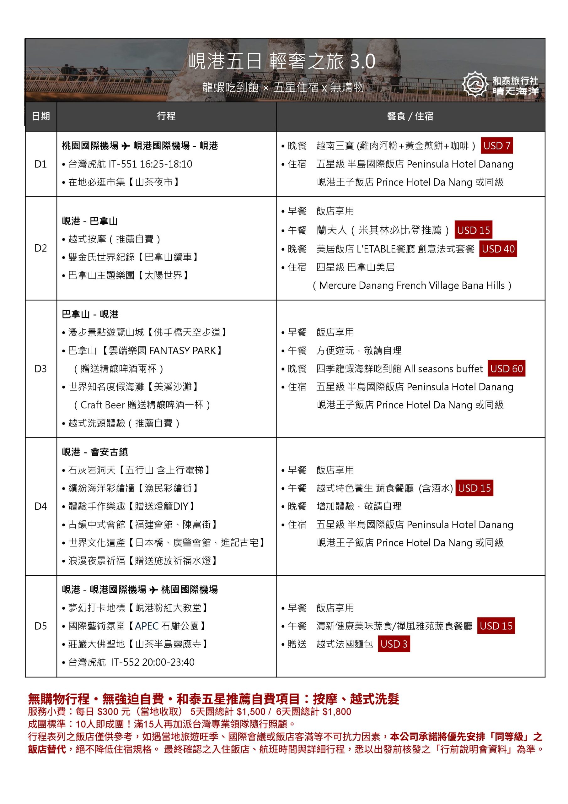 📌 小費每人 NT$300 / 天(依實際旅遊天數計算)
