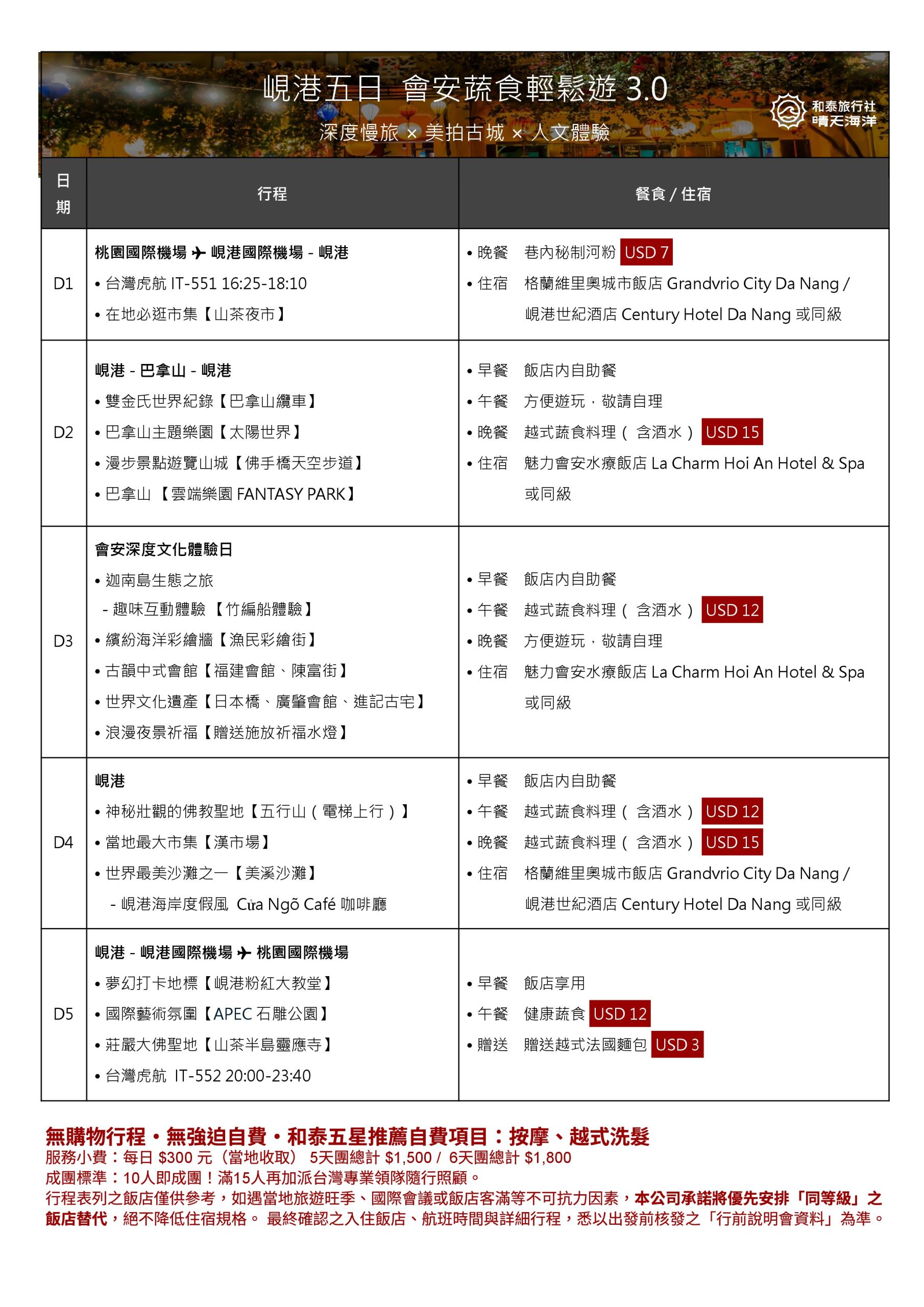 📌 小費每人 NT$300 / 天(依實際旅遊天數計算)