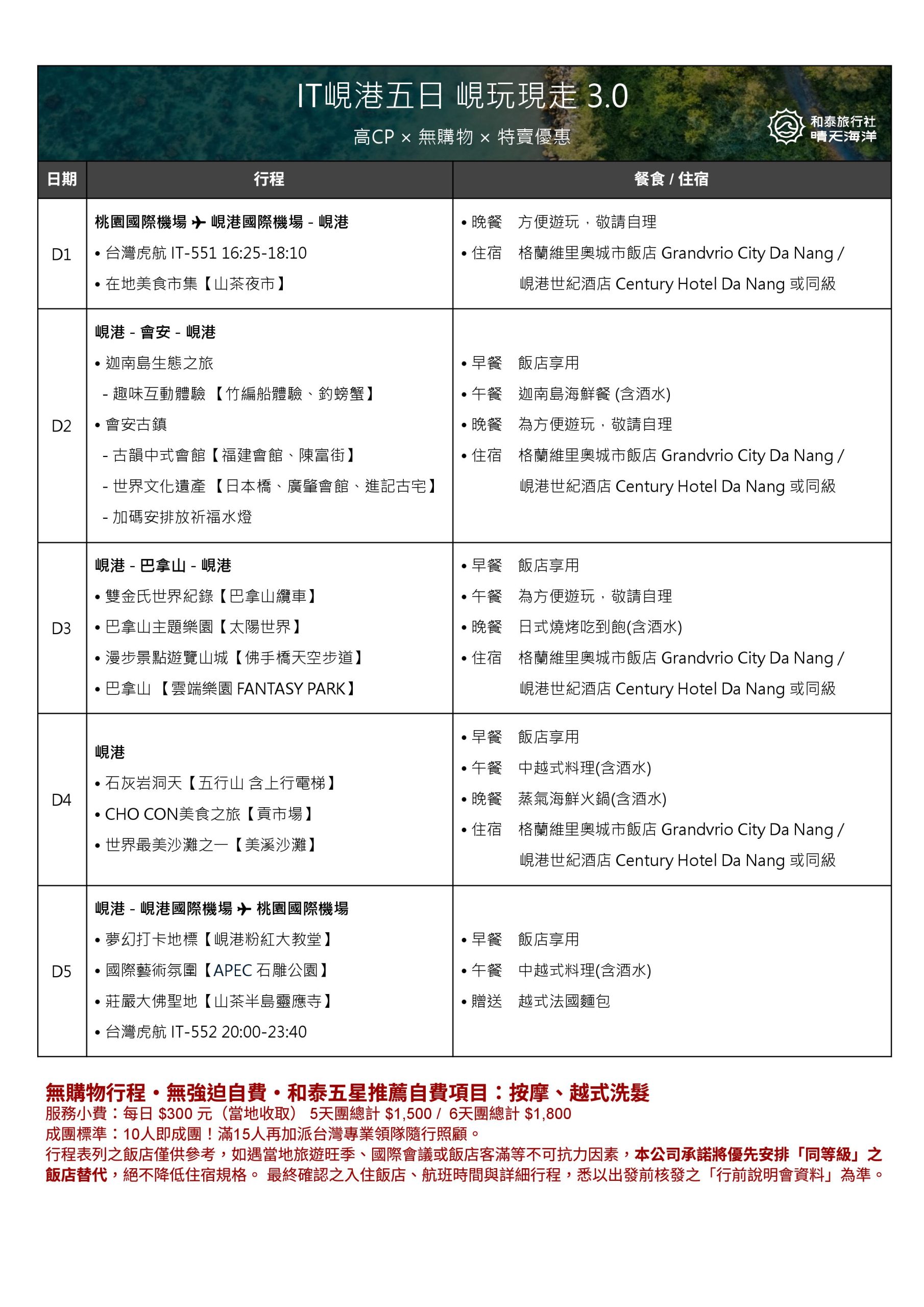 《越南峴港5日》特惠團 峴玩現走|高CPx無購物x熱門經典走遍遍