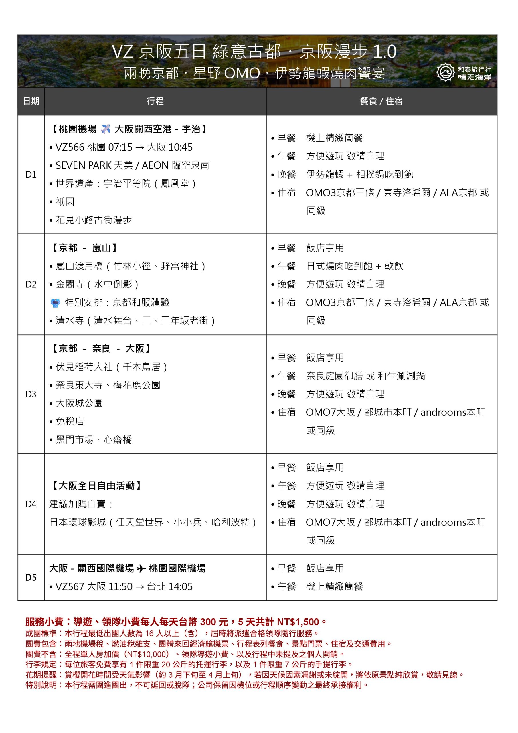 📌 小費每人 NT$300 / 天(依實際旅遊天數計算)