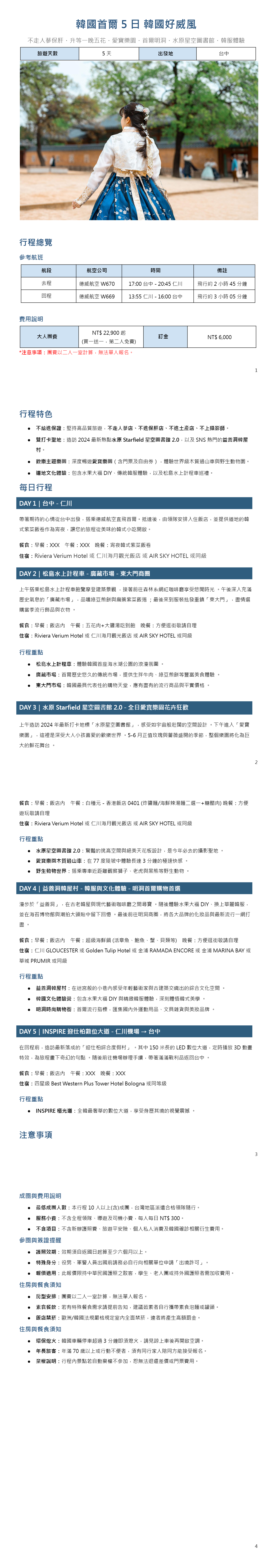 《韓國首爾5日》 韓國好威風|不走人蔘保肝・升等一晚五花・愛寶樂園・首爾明洞・水原星空圖書館・韓服體驗 (台中出發)