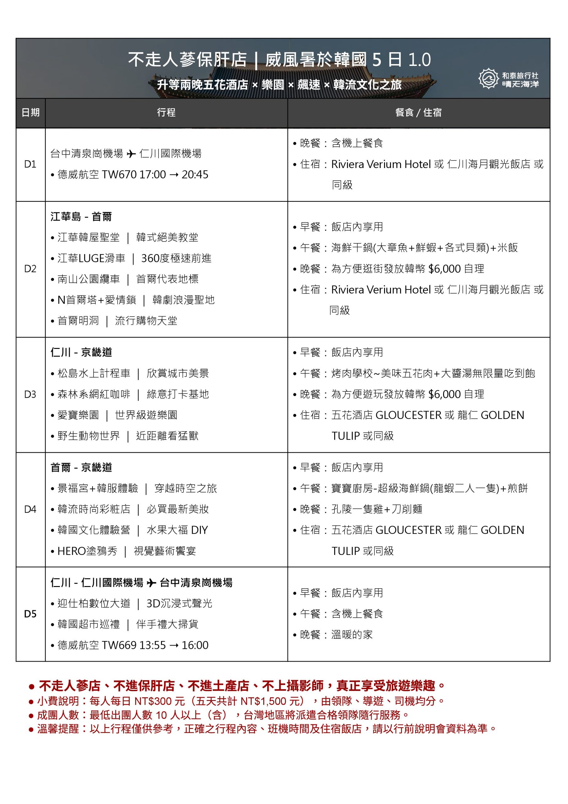 《韓國首爾5日》 威風暑於韓國|不走人蔘保肝 升等兩晚五花 × 樂園 × 飆速 × 韓流文化之旅 (台中出發)