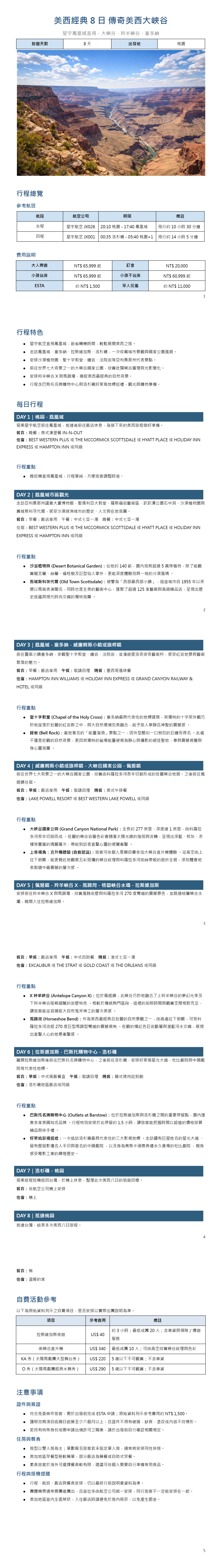 行程亮點: 晚班機直飛鳳凰城,行程節奏單純,方便旅客調整時差