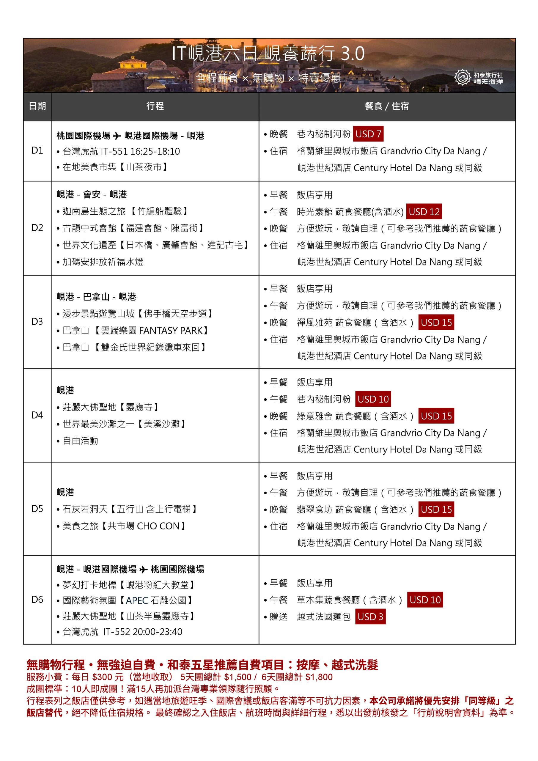 📌 小費每人 NT$300 / 天(依實際旅遊天數計算)
